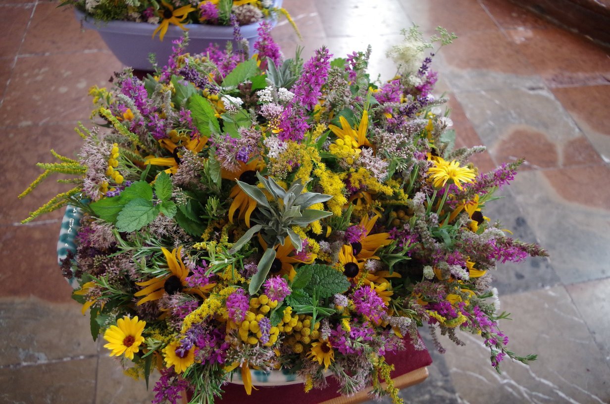 Danke den Bäuerinnen für ca. 200/250 Kräuterbüscherl, die sie wieder für die Gottesdienstbesucher vorbereitet haben - siehe Fotos "weiter".