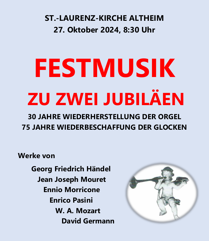 Danke für die festliche Gestaltung Hr. Prof. Pumberger an der Orgel und den Solistinnen Martina u. Cornelia Ruthmann (Mutter u. Tochter). Es war einmalig. Es wurden Lieder von Haydn, Puccini, Mozart u. a. gesungen. Sehr erhebend!