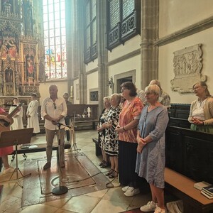 Die musikalische Begleitung des Gottesdienstes übernahmen der „Eferdinger Domchor“ – sangesfreudige Mitglieder der katholischen Frauenbewegung - Johann Götzenberger als Kantor, Christa Außerwöger und Veronika Landertinger auf ihren Instrumenten: Ein runder Klang, eine herzliche Stimmung, ein schöner Gottesdienst – DANKESCHÖN!