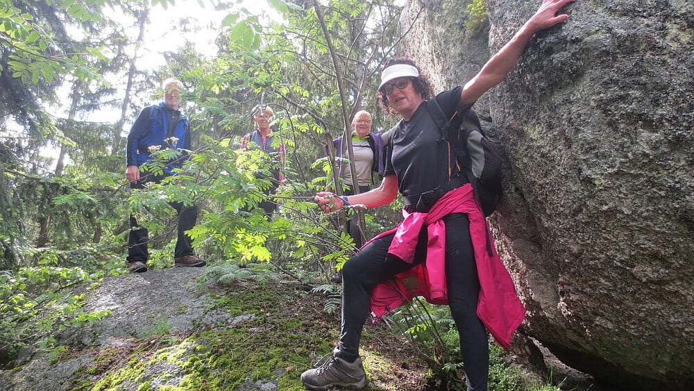 Nach dem Start in Waldhausen wanderten wir in einer moderat ansteigenden Mühlviertler Landschaft durch einen Wald nach Dimbach (Mittagessen) und weiter bergauf und -ab nach St. Georgen/Walde. Ein Teil der Gruppe erwanderte noch den Kranzberg (874m) mit großartigen Granitformationen (ca. 16km, 600Hm).