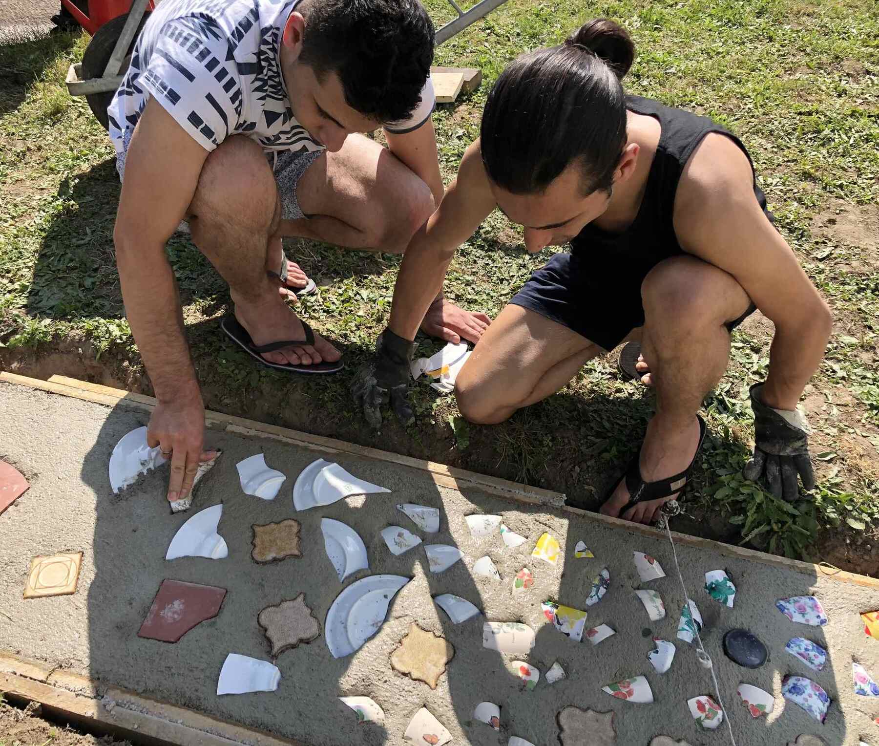 Zur Pinie hinführend ist daher auch ein symbolischer „Weg der Tränen“ entstanden, gepflastert mit Porzellanscheiben und versehen mit einer Parkbank zum Verweilen. Dieser Ort soll nun ein Gedenk- und Gebetsort für den Frieden in Syrien und in der ganzen Welt sein und darüber hinaus daran erinnern, was in den Seelen der geflohenen Menschen und ihrer Angehörigen durch den Krieg und die Flucht zerbrochen ist.