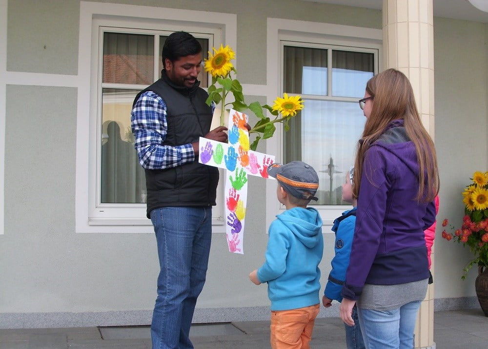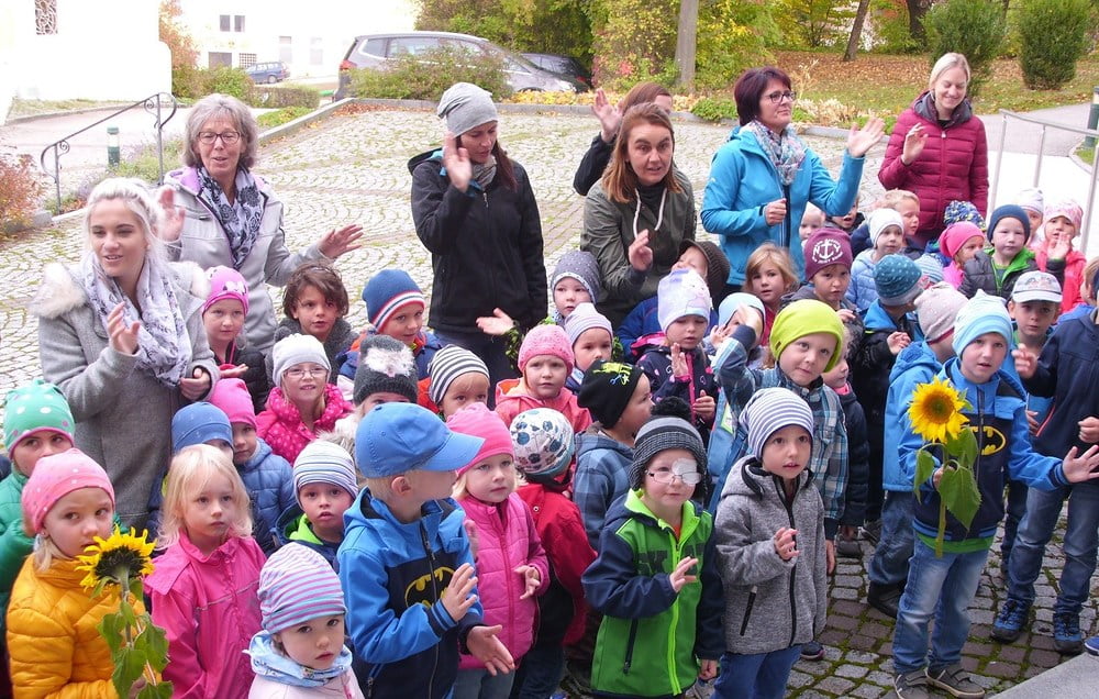 Einen besonderen Willkommens-Gruß überreichten dann in der kommenden Woche unsere Kindergarten-Kinder – eine Sonnenblume!