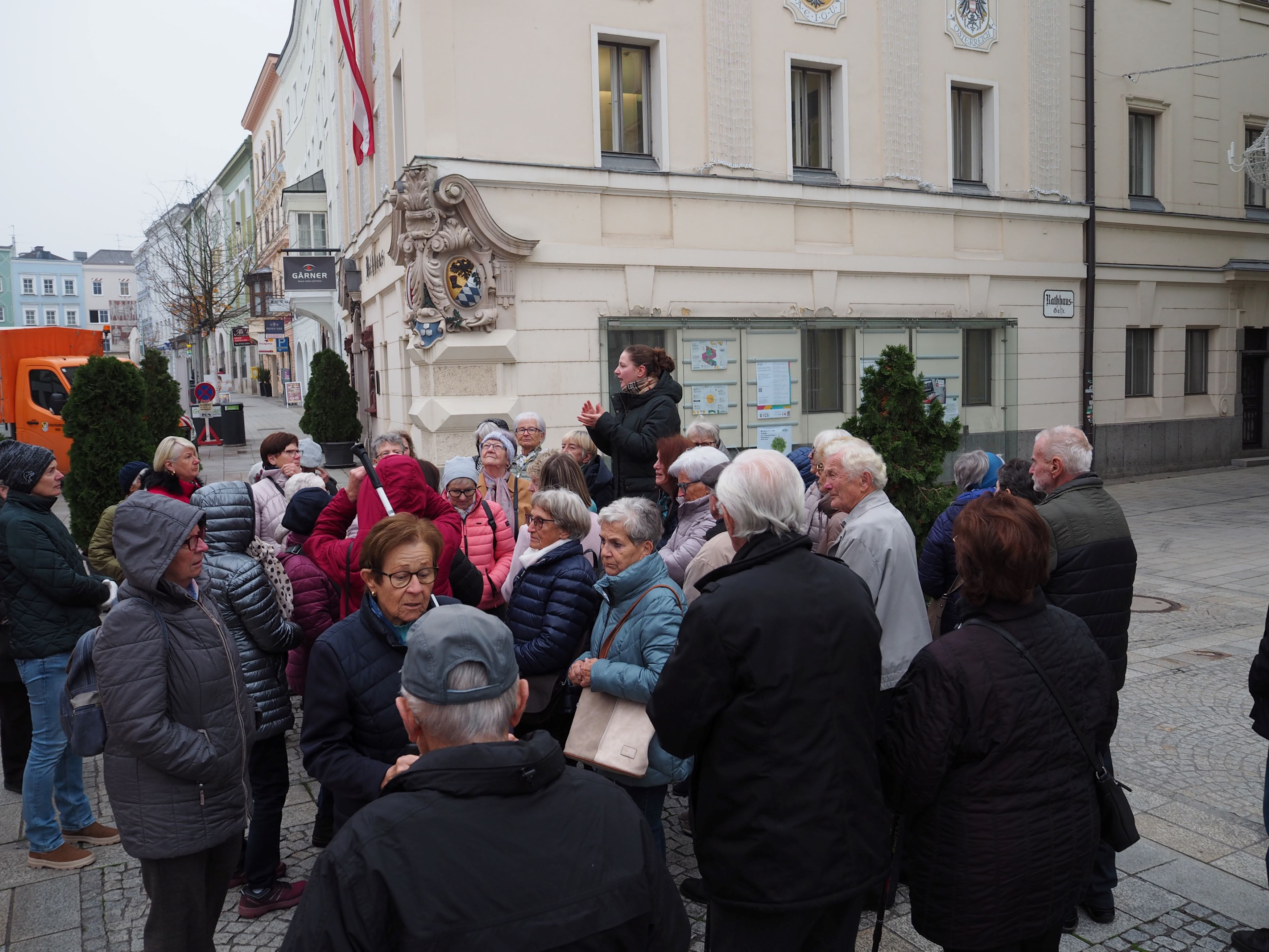 Dort startete auch unsere Stadtführung. Sie führte über die vielen schönen Plätze von Ried zum Volkskundemuseum, wo die Stille-Nacht-Krippe ausgestellt ist.