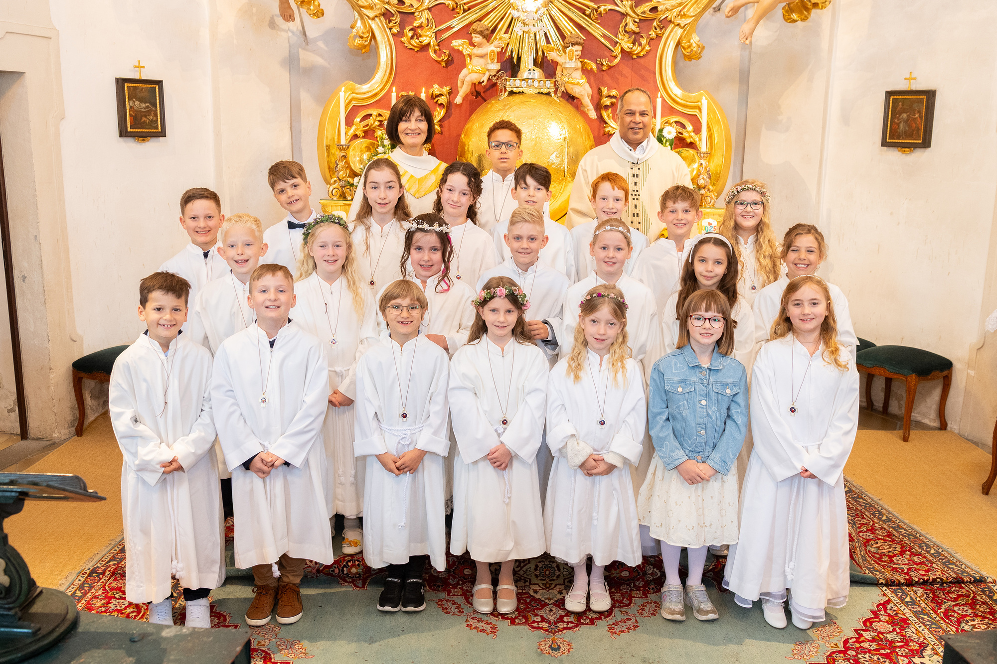 Bei schönem, aber sehr kühlem Wetter feierte die Pfarrgemeinde Christkindl die Erstkommunion. 23 Kinder der 2. Klasse Volksschule bereiteten sich mit ihren Tischmüttern darauf vor.